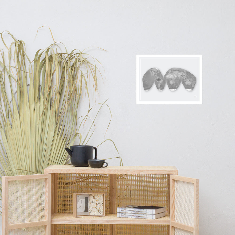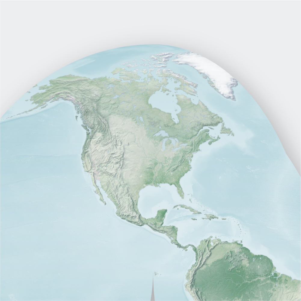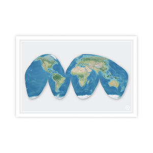 Part of our Shapes of the Earth collection, this Good Homolosine projection world map shows the round Earth unfurled in a unique shape. Choose from a design with vibrant natural colors, muted natural colors, or a grayscale palette to match the decor of your room. Features of the land and depths of the ocean are accented on this shaded relief map art.